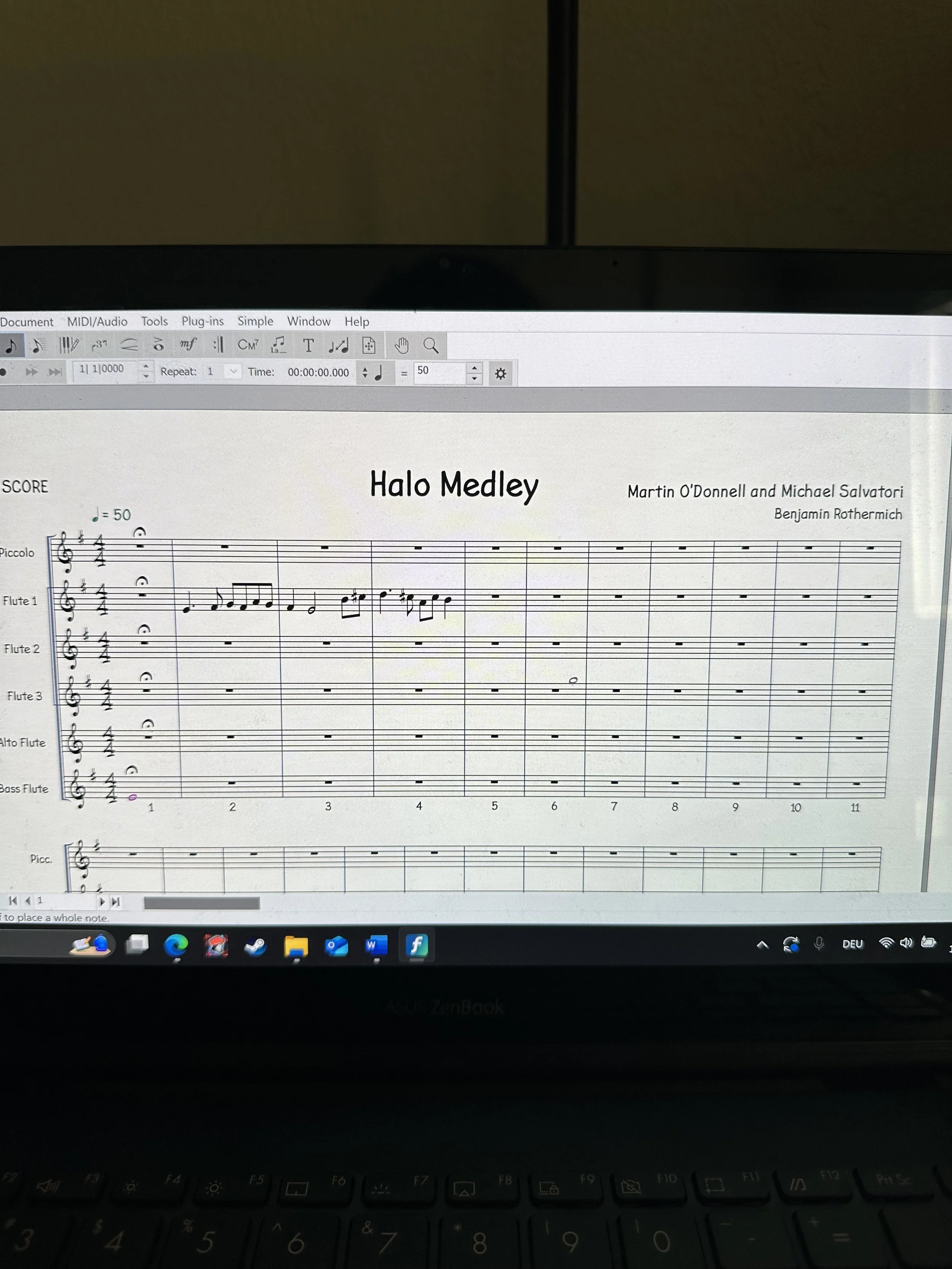 The next question that comes up is with regards to the piece to arrange. For the entirety of my life, I have chosen video games as my hobby. They are great for picking up and relaxing or competing against others. Plenty games have soundtracks worthy of adapting to flute choir, including older Call of Duty’s, Cuphead, and Outer Wilds. Outer Wilds may just be my next project, however, the game that truly gets my brain tingling is Halo. I have played those games since just after Halo 3 launched, and the “Master Chief Collection” is downloaded on my Steam Deck for on-the-go play. The plan is finally set: a Halo medley arranged for flute choir.